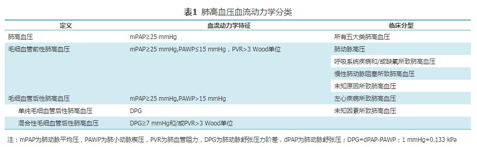 肺高血压血流动力学分类见表1。